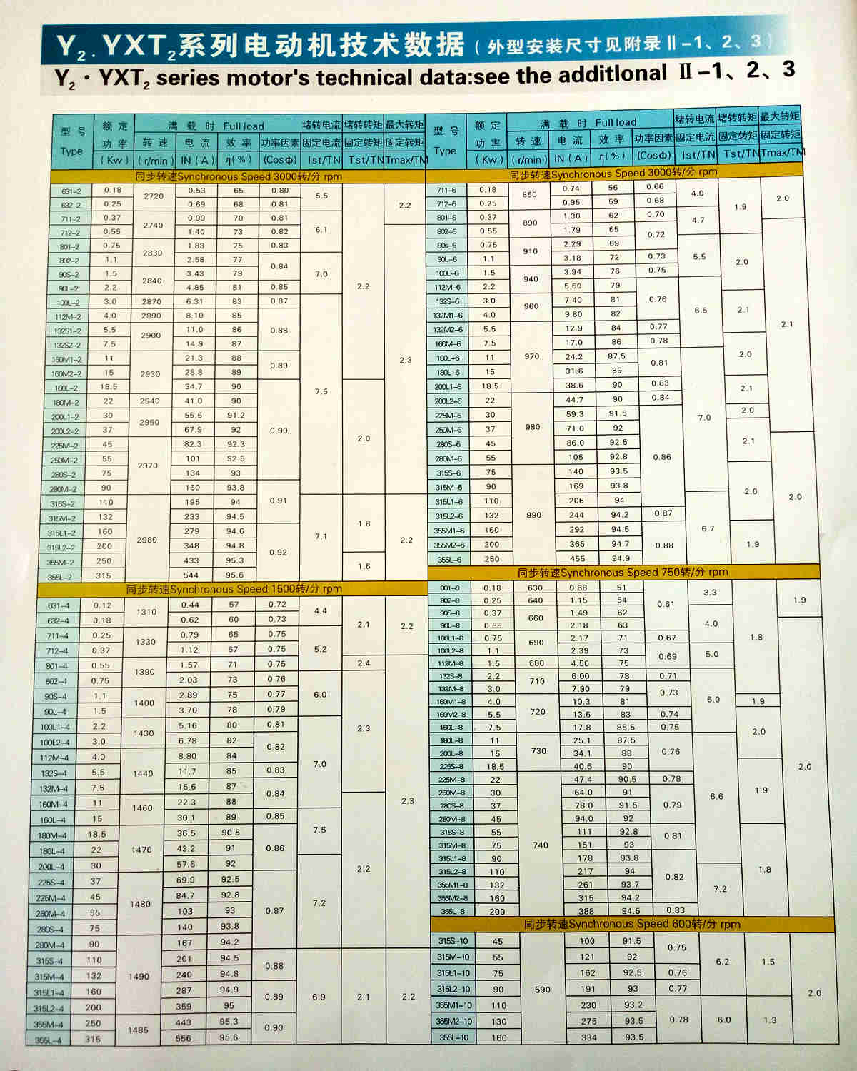 簡介—— Y2.YXT2系列電動機技術(shù)數(shù)據(jù)